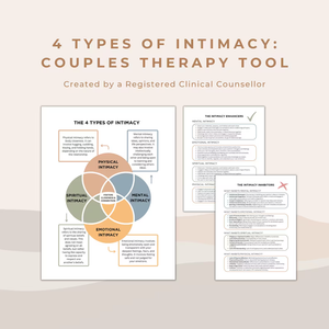 This worksheet breaks down the four main types of intimacy and highlights common factors that can either enhance connection or inhibit closeness. It is designed to support meaningful conversations, increase awareness, and help couples identify patterns that may be impacting their relationship.